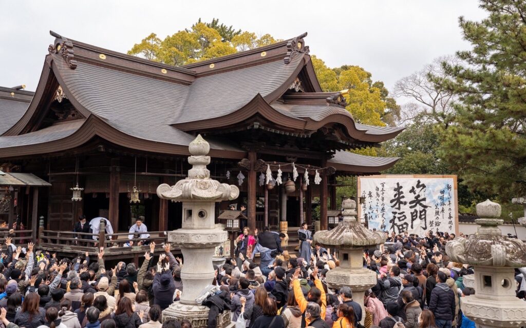 厄年や年男により福豆や福餅がまかれ、厄祓いをします。