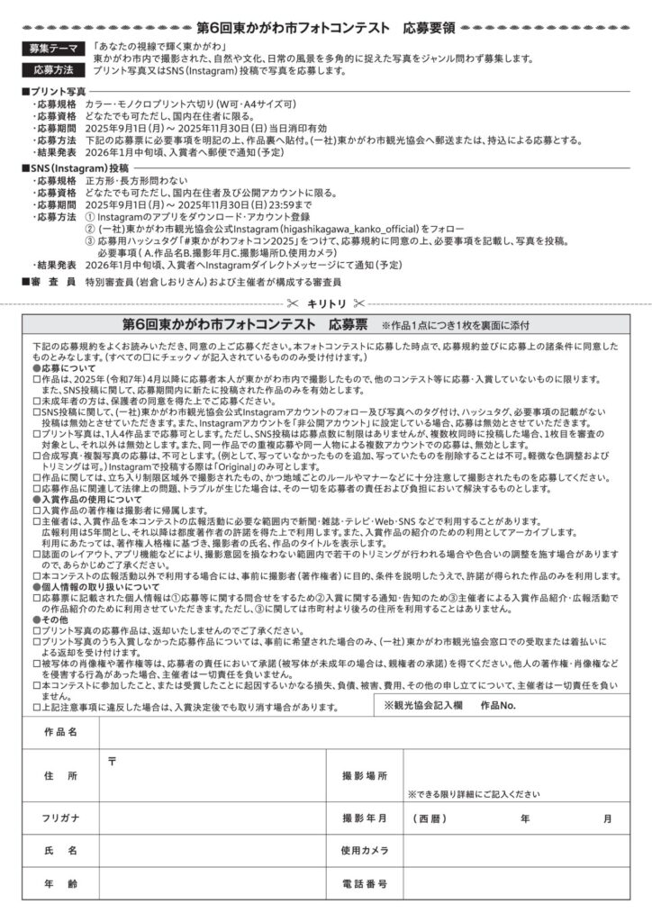 その他詳細は東かがわ市フォトコンテストサイト(https://higashikagawa-photo.com/)に掲載しておりますので、ご覧ください。