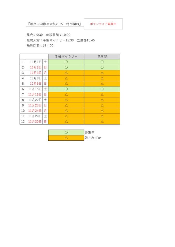 瀬戸内国際芸術祭2025 特別開館に関わるボランティアスタッフの募集と現状についてお知らせします。