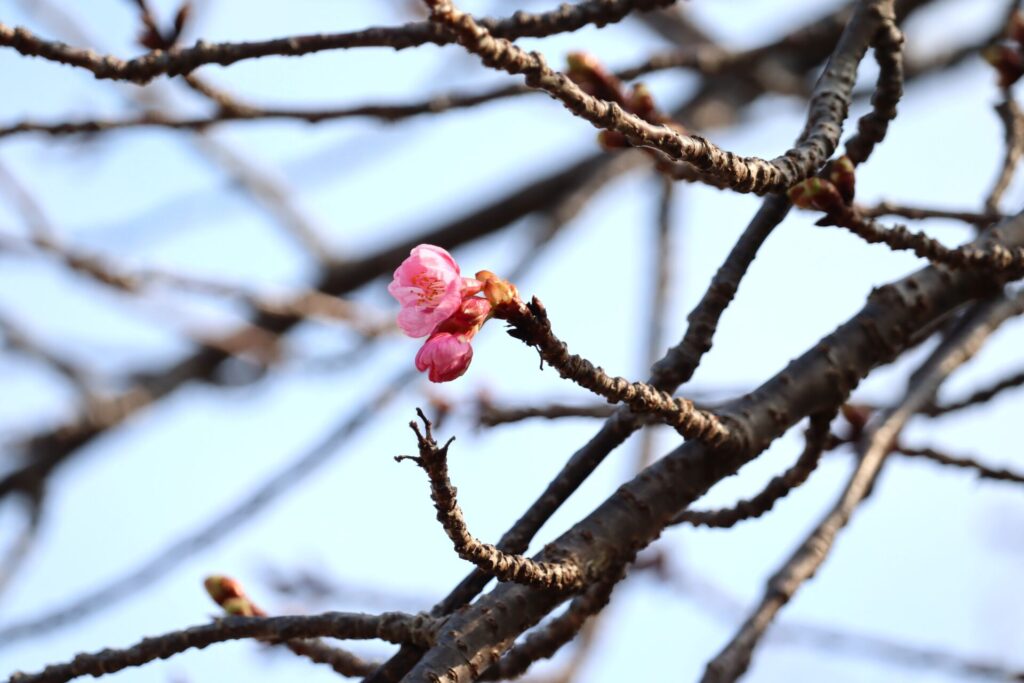 ひと足早い春を告げる河津桜。